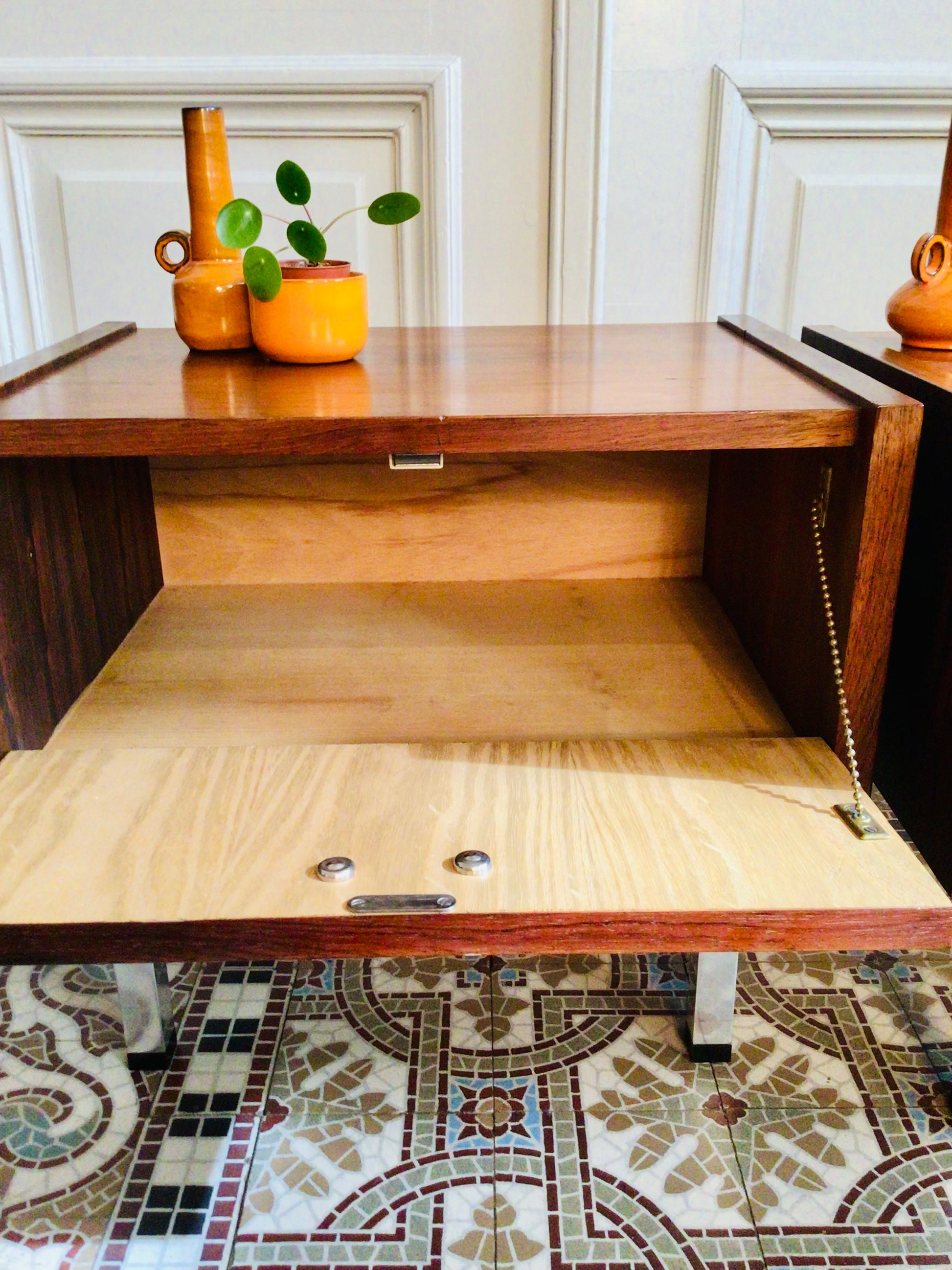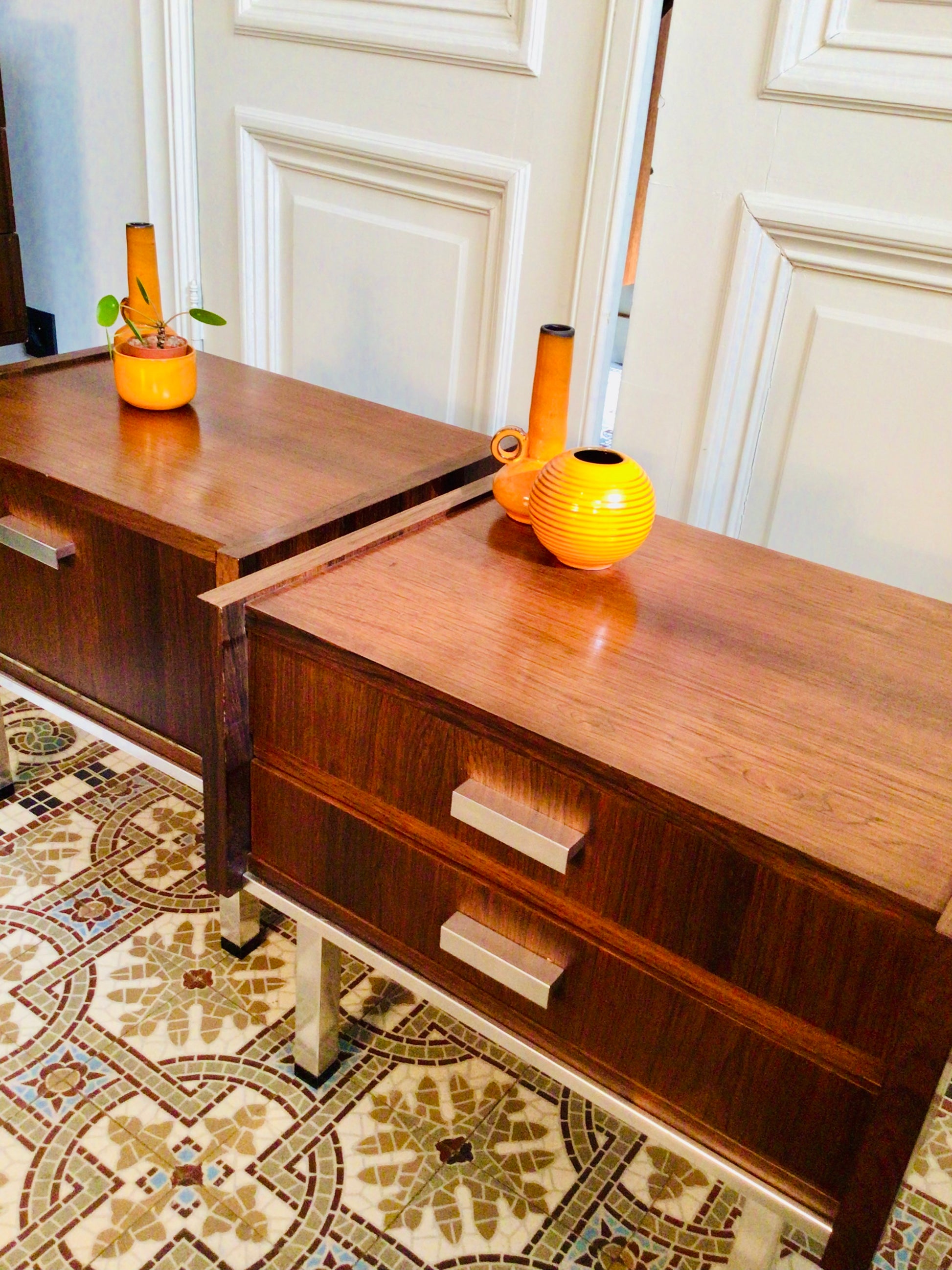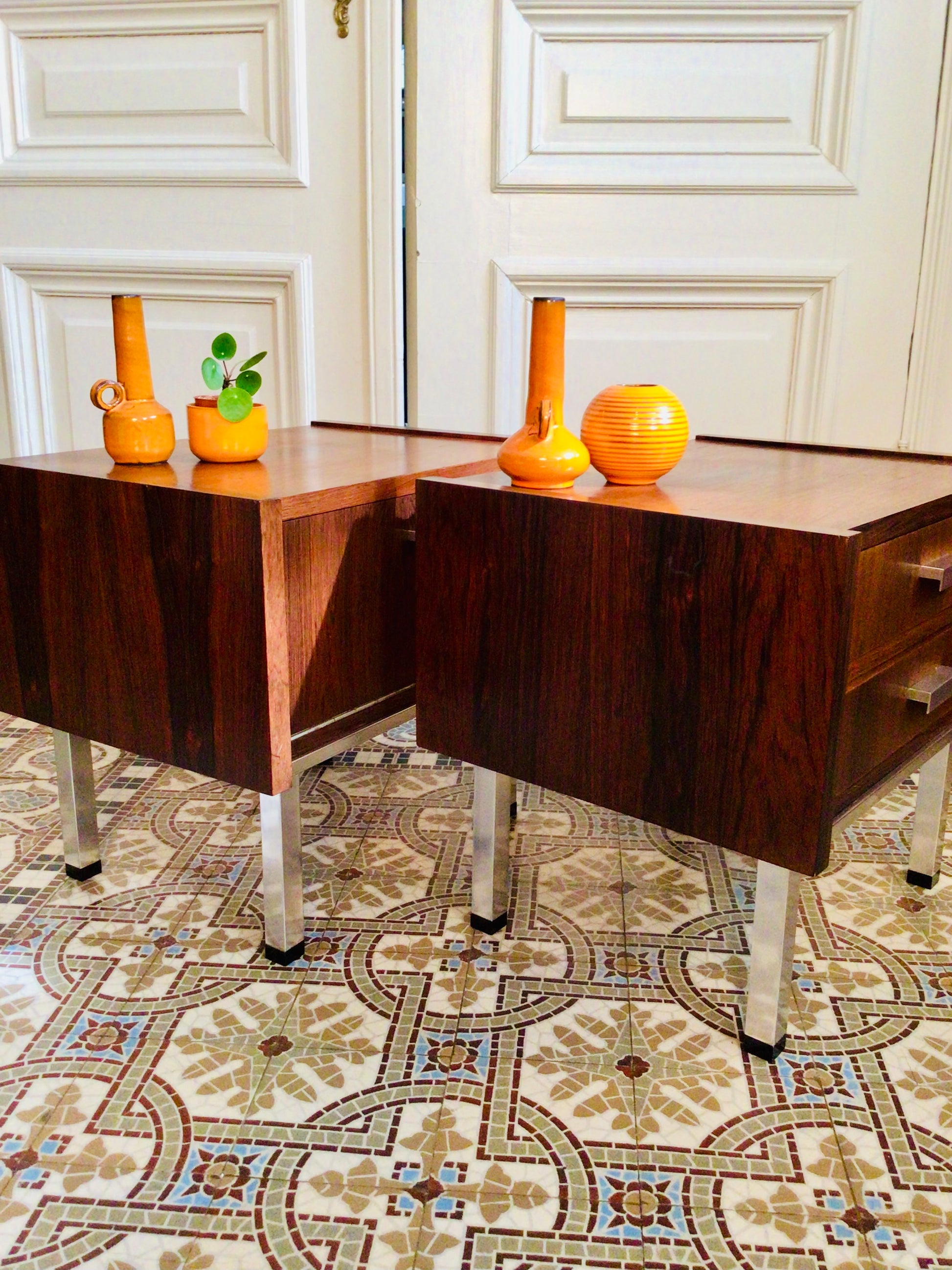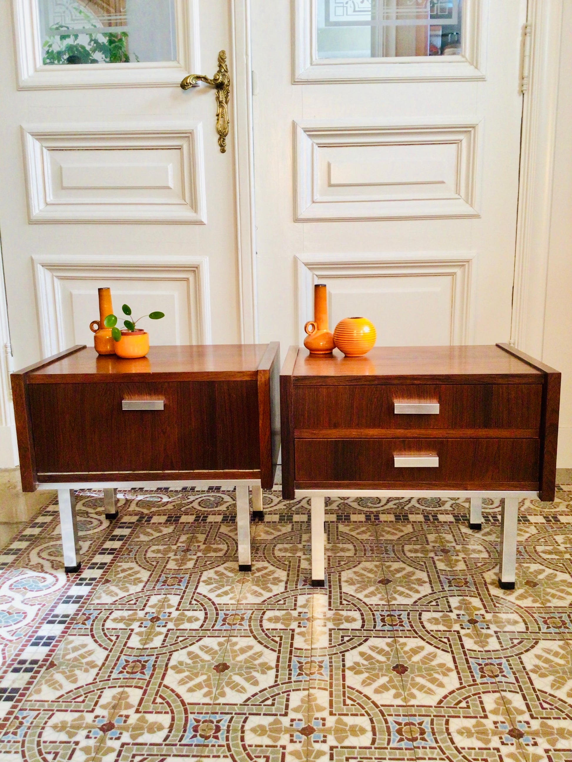 Vintage nachtkastjes in palissander fineer